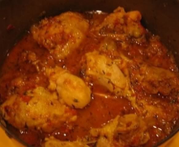 Ensuite, mettez les morceaux de poulet et laisser mijoter pendant 35 à 40 minutes toujours à feu moyen.